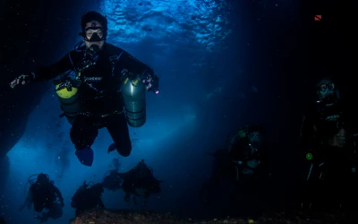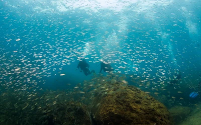 Com formato de uma imensa baleia, a Laje de Santos tem 550m de comprimento, 33m de altura e 198m de largura, e uma diversidade de vida marinha incrível! Conforme a experiência do grupo e condições do mar, é possível a realização de mergulho em diferentes pontos na Laje de Santos. Conheça os principais pontos: